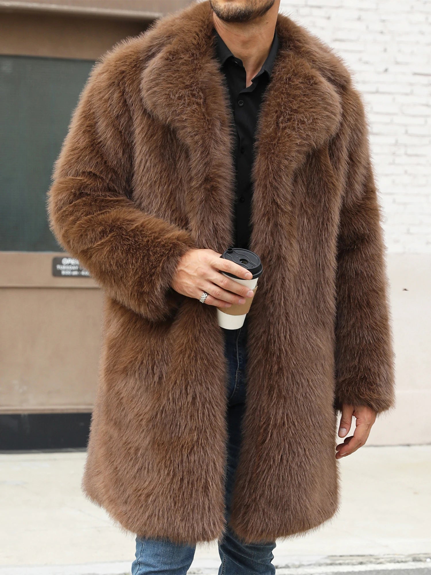 Men's Faux Fur Coat Winter Warm Open Front Overcoat Style