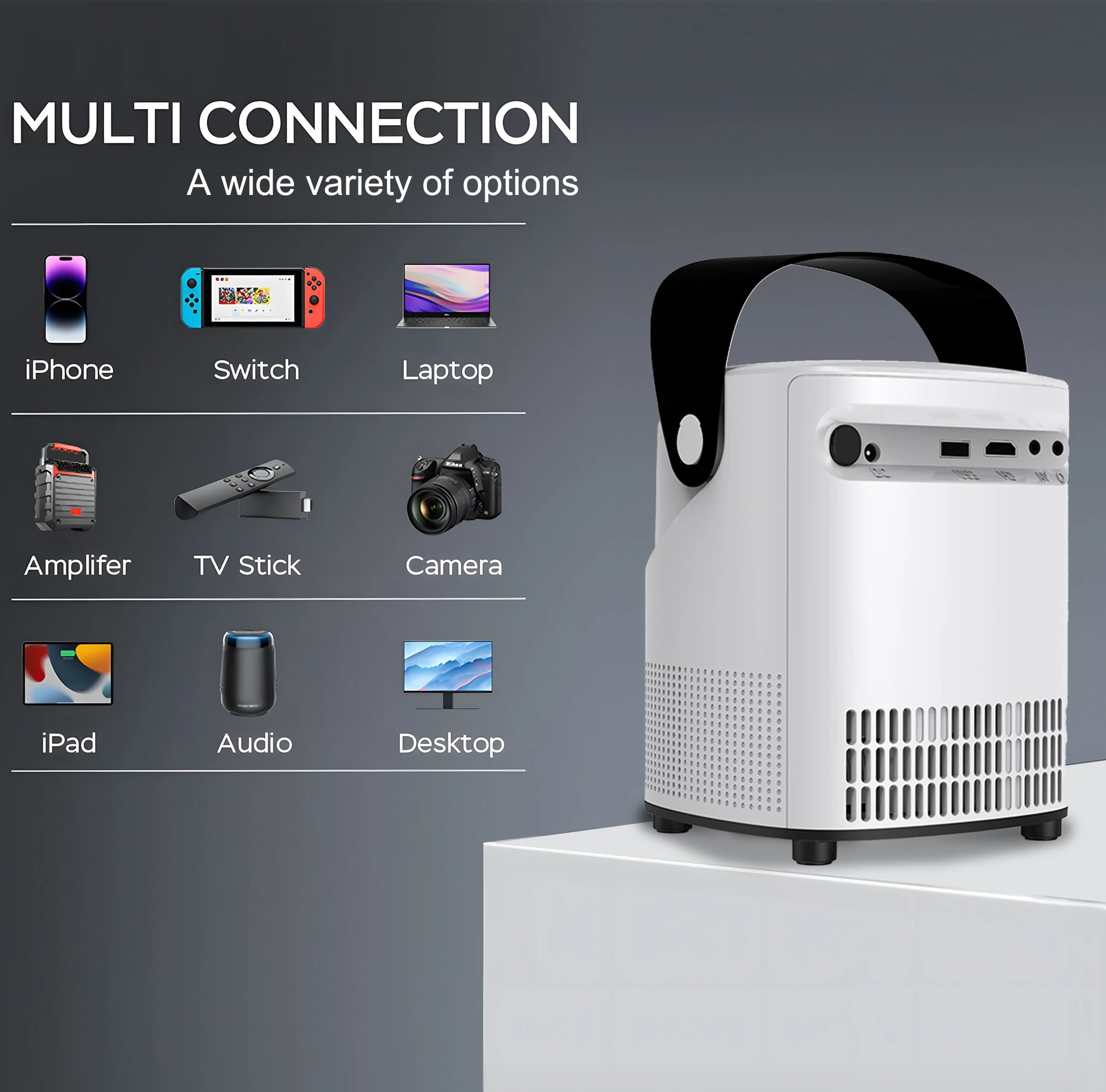 Turn any space into a cinematic escape with the FEEL WOW T2 Portable WiFi Bluetooth Projector with Stand.