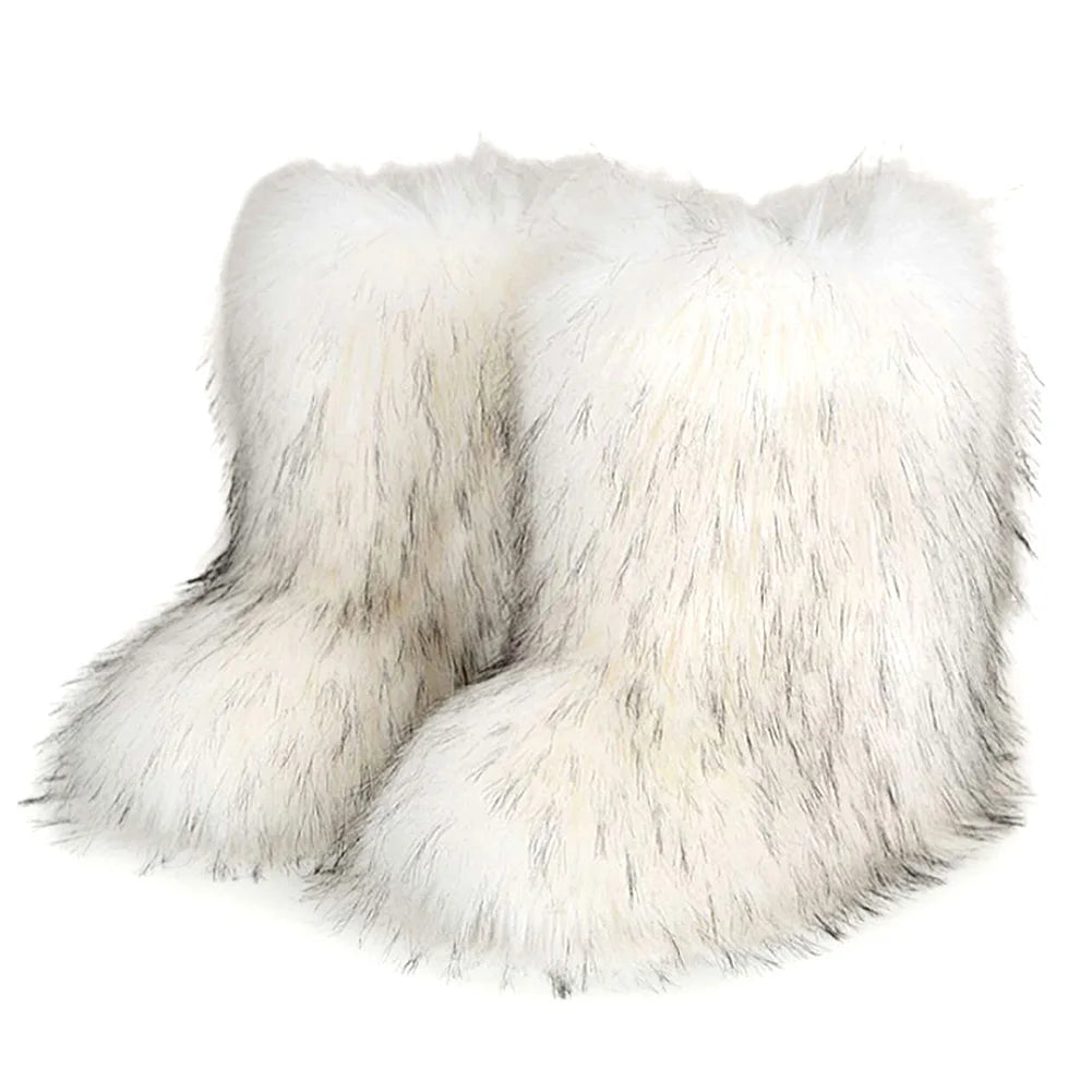 Shunmaii Womens Furry Boots Faux Fur Snow Winter Boots