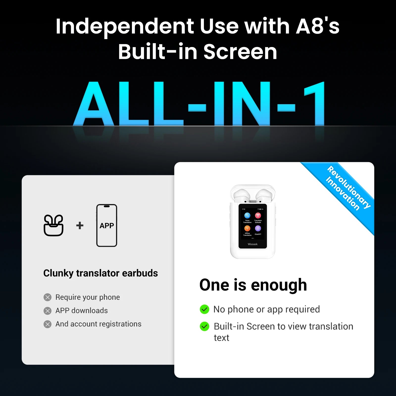 Wooask A8 AI Translator Earbuds With Real Time Translation